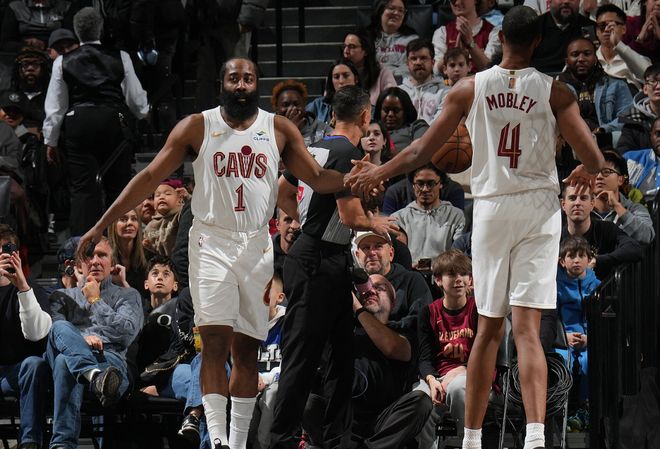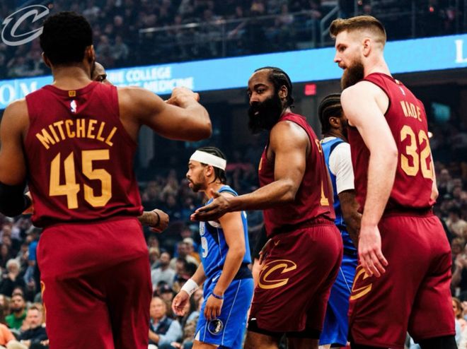 但是,球队也是饱受伤病隐患。自打哈登2月初加盟骑士后,骑士这期间一共有18场比赛,战绩12胜6负,其中哈登出战的比赛,12胜4负。自从哈登加盟,主帅阿特金森每一次面对镜头,丝毫不吝啬溢美之辞,真把哈登夸上天了,2月份阿特金森对于哈登的使用方式,就是极力控制他时间,让他给身体充电,恢复体能,哈登效率非常好,2月份场均19分8助攻,两项命中率高达49.4%+48.8%!但是问题随之而来,再看同期骑士另外三巨头的缺阵场次:米切尔缺阵5场;下一场打鹈鹕也可能无法出战。