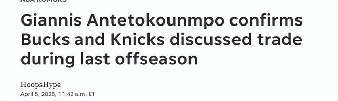 名记Shams曾在2025年10月8日(2025-26赛季开赛两周前)报道称,字母哥明确表示,如果雄鹿决定交易他,尼克斯是他唯一愿意被送往的球队。Shams还提到,尼克斯当时确实就字母哥向雄鹿询价,双方在8月就已“展开对话”,但交易始终没有实质性进展。