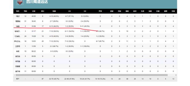 比赛数据方面,四川女篮与江苏女篮的投篮命中率是48%-50%、三分命中率是42%-28%,篮板比为42-41,助攻比为25-26,失误比为13-14。从数据上看,四川女篮显然是赢在了外线投射上。