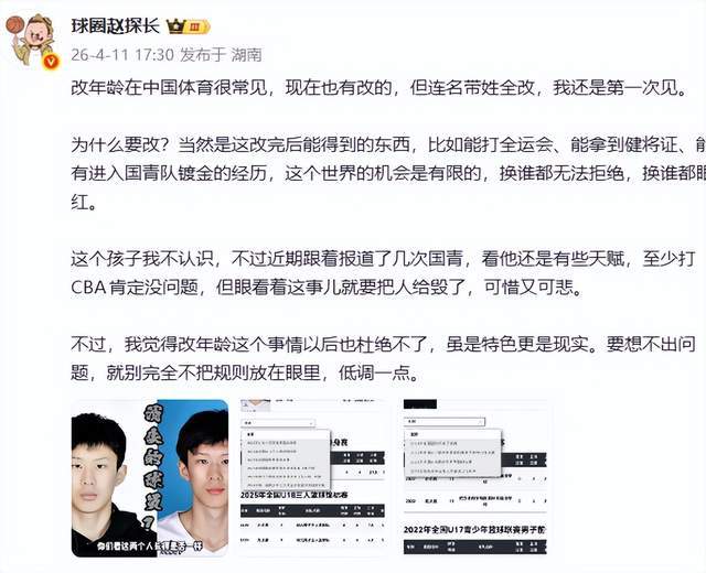 目前,中国篮协尚未公布最终调查结论,但已明确表态将依法依规处理。事件折射出青少年体育选拔机制中的深层漏洞,也警示:在机会有限的竞技体系中,规则的尊严,远比一时的“超龄红利”更为重要。