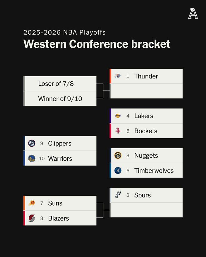 附加赛周二开打。联盟刚把赛制改成7-8名输家还能打9-10名胜者,本意是减少偶然性,结果今年西部第3到第10咬得比往年都紧。肖华想要戏剧性,这次算是如愿以偿——只是湖人球迷可能想退票。