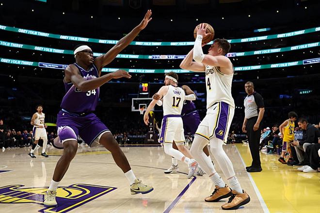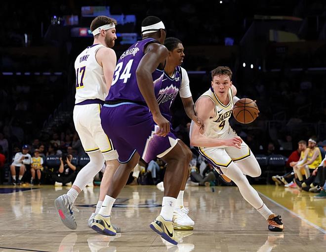 本场比赛中,湖人的替补侧翼新星道尔顿-克内克特(Dalton Knecht)难得打出了一场相当不错的比赛。克内克特全场出场12分钟,投篮9中6,三分线外6中5,以超高的效率拿下了17分2篮板4助攻1抢断的数据,还有3次犯规,正负值为+3。值得一提的是,17分也是克内克特本赛季的个人单场最高得分。克内克特在有限的出场时间内展现出了自己超强的得分能力和投射能力,命中了大量的三分,甚至还展现出了一定的传球能力和组织能力,在进攻端的作用非常突出。克内克特在防守端的表现也算是整个赛季,也没有什么太大的问题。至少在本场比赛中,克内克特算是将自己各方面的特点都发挥了出来,在进攻端起到了关键的作用。可惜他的出场时间还是少了一些,他在这种情况下也很难发挥出自己更大的作用。