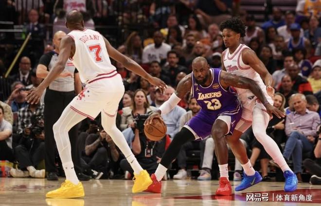 时光飞逝,一转眼到了今年,火湖大战又翻开了新的一页。重建完毕的火箭,就像突然中了彩票,迎来了杜兰特这位超级大咖的加盟。湖人这边呢,本来都顺利完成了从詹姆斯到东契奇的“交接棒”,可谁能料到,东契奇在季后赛前“哐当”一下就倒下了,里夫斯也因伤缺席,湖人的领袖宝座又“物归原主”,回到了詹姆斯手里。
