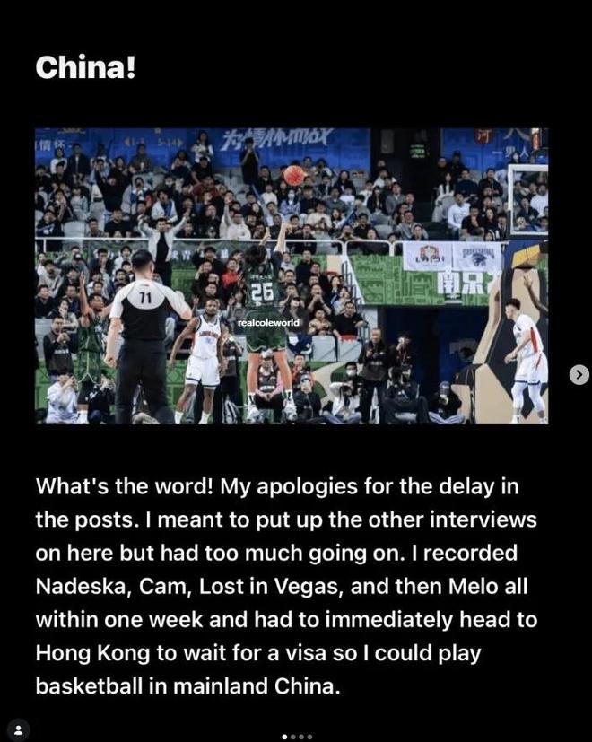 我在一周内录制Nadeska、Cam、LostinVegas以及Melo的访谈内容,随后不得不立即赶赴中国香港等待签证,以便能够在中国内地进行篮球比赛。