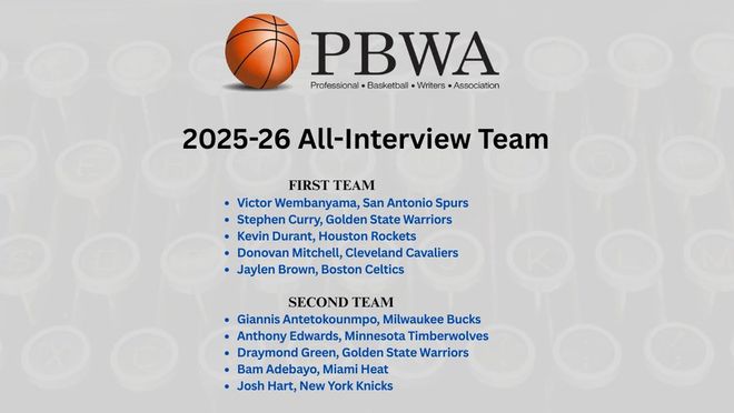 协会主席霍华德-贝克表示:“NBA是一个天赋无限、同时也极具人格魅力的联盟。我们感谢这些球员愿意付出额外精力,让我们的报道更具信息量与启发性。”