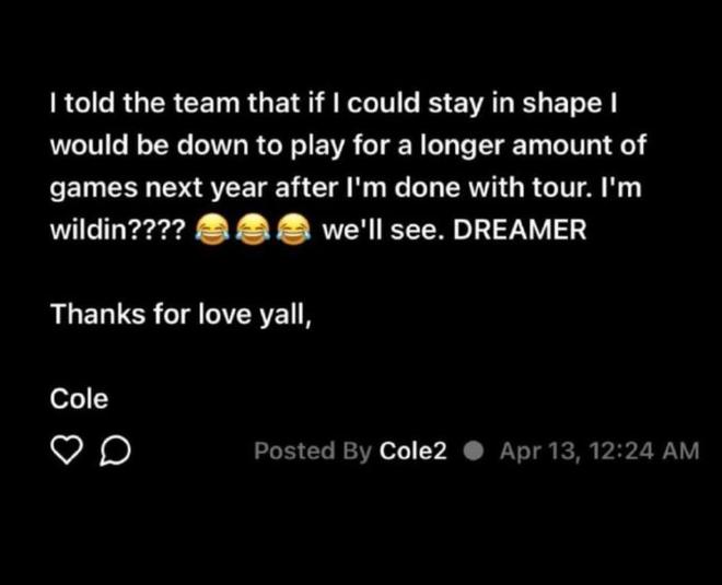 但这完全可以理解,JCOLE毕竟是个41岁的篮球老将了。