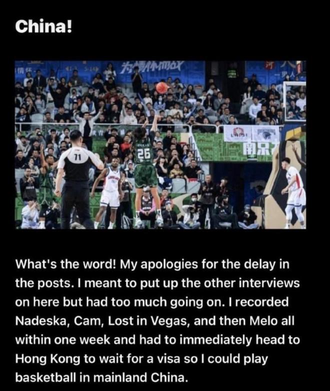 JCOLE在发文中表示,他一开始计划至少为 CBA南京队打3场比赛,但因为工作签证原因,最终只打了一场。