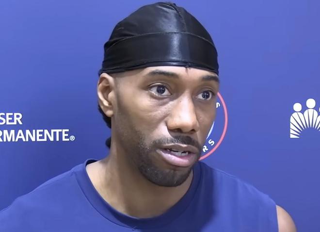 北京时间4月15日,在NBA附加赛快船对阵勇士赛前,伦纳德接受了媒体的采访。