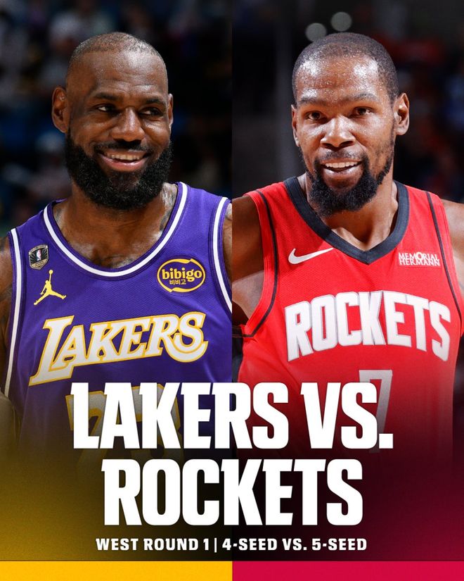 湖人和火箭的首场对决,也意味着詹姆斯和杜兰特再次在季后赛碰面。这甚至有可能成为两人在季后赛生涯的最后一次交锋。 官方也在此前列出了两人在季后赛可能解锁的里程碑。