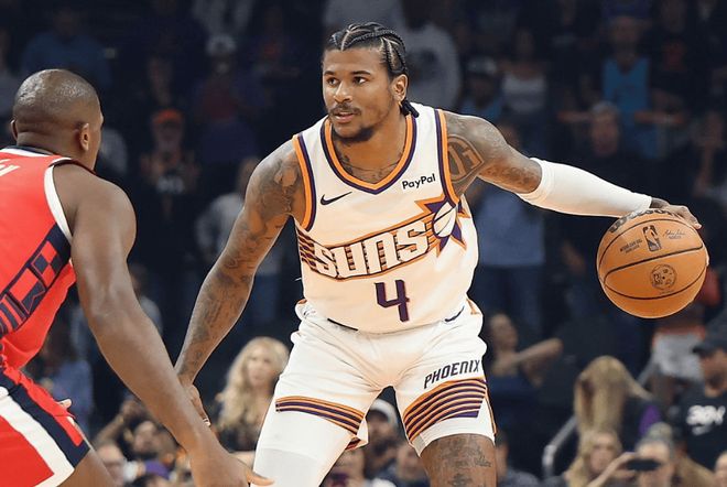 此役,太阳队方面赢球的最大功臣当属“风雪哥”杰伦-格林了,没有想到常规赛表现平平的格林,来到附加赛如此之猛,上一场比赛虽说球队输给了开拓者队,但是格林的表现是非常不错的,全场狂轰35分,差一点就是带队赢球。来到与勇士队这一场对决,格林延续着自己的火热手感,全场比赛出战39分31秒的时间,20投14中,其中三分球14中8,非常高效地拿到36分外加6篮板4次助攻2次抢断和次盖帽的数据,攻防两端可以说直接拉满了,最终帮助球队赢下勇士队。接下来的季后赛首轮比赛,太阳队即将面对卫冕冠军雷霆队,如果格林还是能够延续这样的状态和发挥,太阳队还是有机会和雷霆打一打的