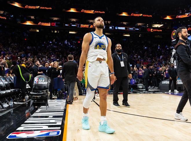 没有奇迹了,没有黑八了,勇士的赛季就这样结束了,其实正如科尔在赛后所说,从巴特勒赛季报销的那一刻起,勇士的赛季就结束了,只是因为库里的存在,让一些勇士球迷相信他们还有希望创造奇迹,附加赛的第一战,库里也确实给球迷一种要逆天改命的味道,他们硬是战胜了最近几个赛季的苦主快船,但面对本赛季他们随意拿捏的太阳,库里反而是拉了胯,全场出战36分钟,投篮16中4,三分10中3,只得到17分4篮板4助攻,并且这场比赛库里是从头拉到尾,上半场6中2得到7分,下半场10中2得到10分,赛后美媒直言:“第一次库里真的看起来像38岁。”