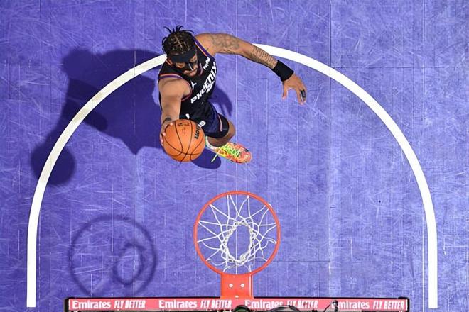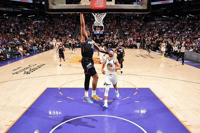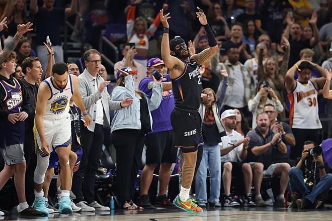 本场比赛中,担任太阳先发小前锋的后场球员乔丹-古德温(Jordan Goodwin)的表现算得上是令人刮目相看,古德温全场出场34分22秒,投篮11中7,三分线外7中4,罚球1中1,得到了19分9篮板2助攻6抢断的数据,其中还包括了4个前场篮板,还有1次失误和1次犯规,正负值为+17。古德温在进攻端展现出了自己全面的得分能力,他在外线投篮方面的表现也是非常靠谱的,他在前场篮板争抢方面的表现同样极其出色,他在进攻端也是得到了大量的分数,为球队提供了不少的帮助和支持。不仅如此,古德温在防守端的表现也是现象级的,他的个人防守能力实在是太强了,他也是给斯蒂芬-库里(Stephen Curry)制造了巨大的压力,导致了库里没有办法发挥出自己的实力。古德温在本场比赛中的表现是现象级的,这也是太阳能够拿下胜利成功晋级季后赛的关键因素。