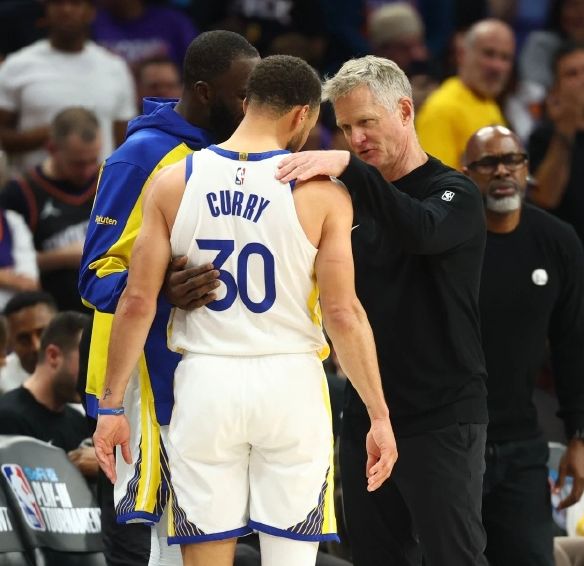 4月18日,勇士96比111不敌太阳,附加赛出局无缘季后赛,赛后格林,科尔和库里三人聚在一起谈话的画面成为球迷关注的焦点。