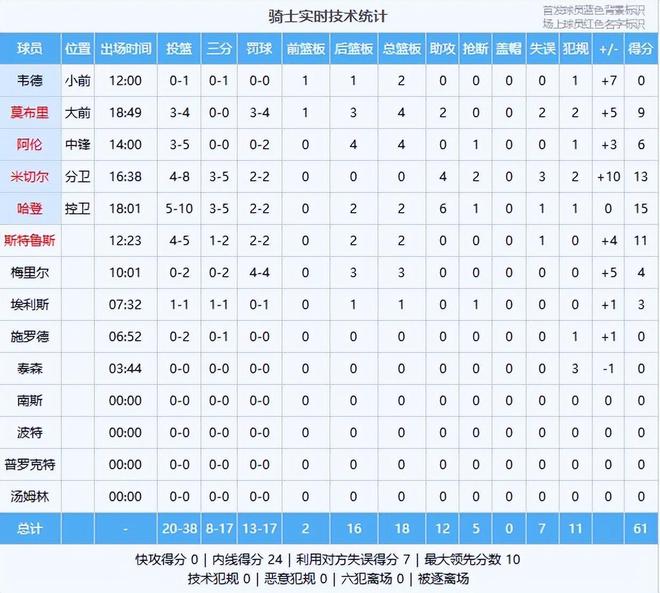 哈登15分2板6助、米切尔13分4助2断、斯特鲁斯11分2板、莫布里9分4板2助、阿伦6分4板、梅里尔4分3板、埃利斯3分1板、韦德2板