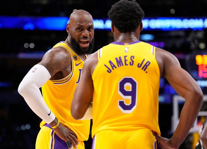 詹姆斯下半场发力了,开始背打,他一次背打奥科吉得手,一次背打伊森得手,裁判的吹罚也是利于湖人的詹姆斯提前下场休息,湖人一度领先到10分。三节打完詹姆斯10分10助攻5篮板2抢断1盖帽。下半场雷迪克也没有继续用布朗尼,但詹姆斯与布朗尼父子同台季后赛已经是历史首次。