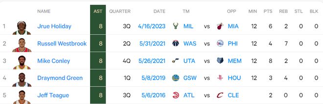 2.NBA历史第二位季后赛首节8助攻的球员,上一位是19年的追梦;