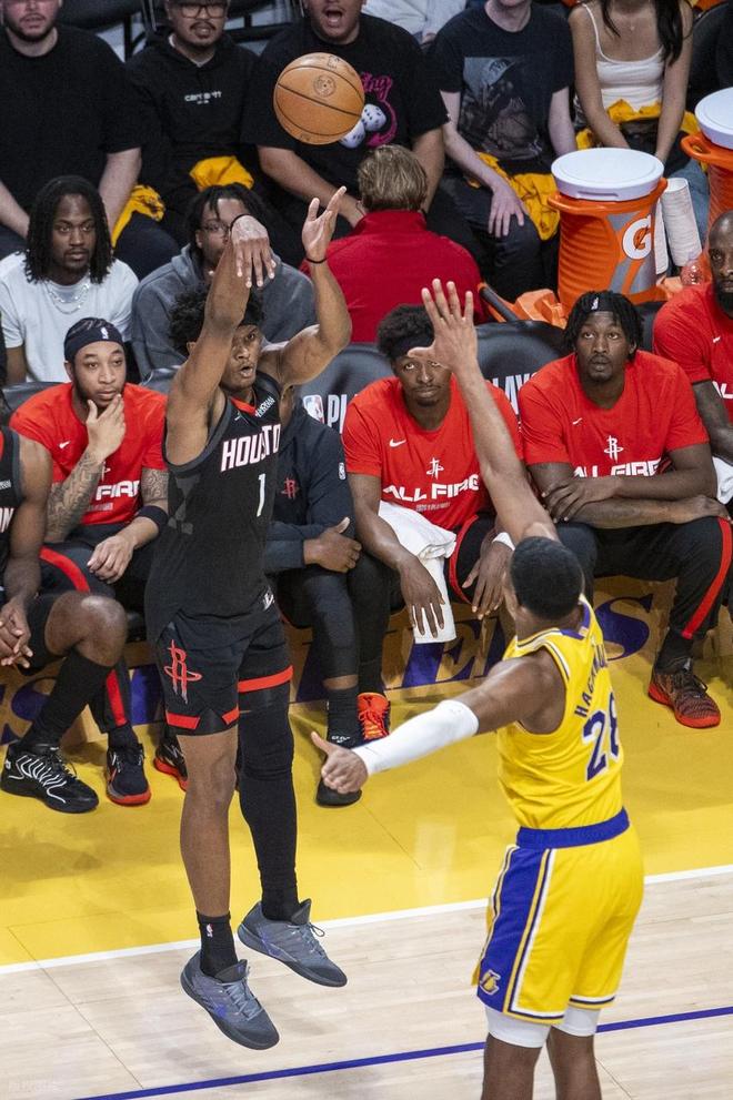 次节比赛,可谓是菜鸡互啄,两队打出19-17的超级低分。开局,老詹干拔2分,泰特罚球拿2分,范德彪命中3分,而火箭失误连连、哐哐打铁,艾顿罚球拿2分,湖人建立9分领先。阿门突破拿2分打破得分荒,谢泼德命中3分,艾顿、八寸联手拿4分,阿门罚球拿2分,斯玛特突破拿2分,申京内线接连进攻不中,回来造艾顿进攻犯规也失败,艾顿暴扣得手后,湖人取得10分领先。不过随后,湖人这边也进攻停滞,小贾罚球拿2分,申京助攻奥科吉暴扣,申京罚球拿2分,詹姆斯3分不进,阿门期间射箭拿3分,半场打完,湖人50-48领先火箭。上半场,湖人得分最高的是艾顿,他拿到12分4板,肯纳德11分2板,詹姆斯得到6分3板但送出10助,此外,八村塁7分3板、斯玛特7分6助2帽。火箭这边,申京得到11分4板2助,小贾得到10分4板,阿门得到8分2板5助,谢泼德得到8分1板3助,奥科吉得到7分2断。