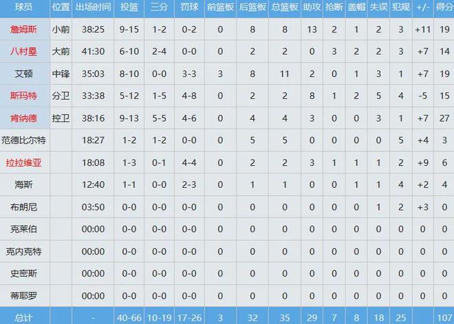 湖人首发五虎全部得分上双,詹姆斯19分8板13助准三双进账。