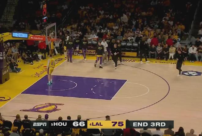 第三节打完,湖人领先优势扩大到9分,这基本上相当于将胜利收入囊中,如上所述没有KD引领进攻的火箭翻盘能力极其有限。