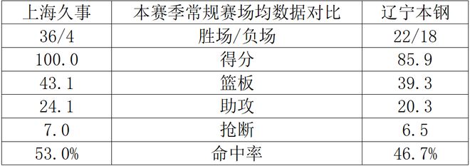 本赛季常规赛场均数据对比: