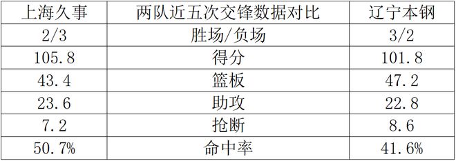两队近五次交锋数据对比: