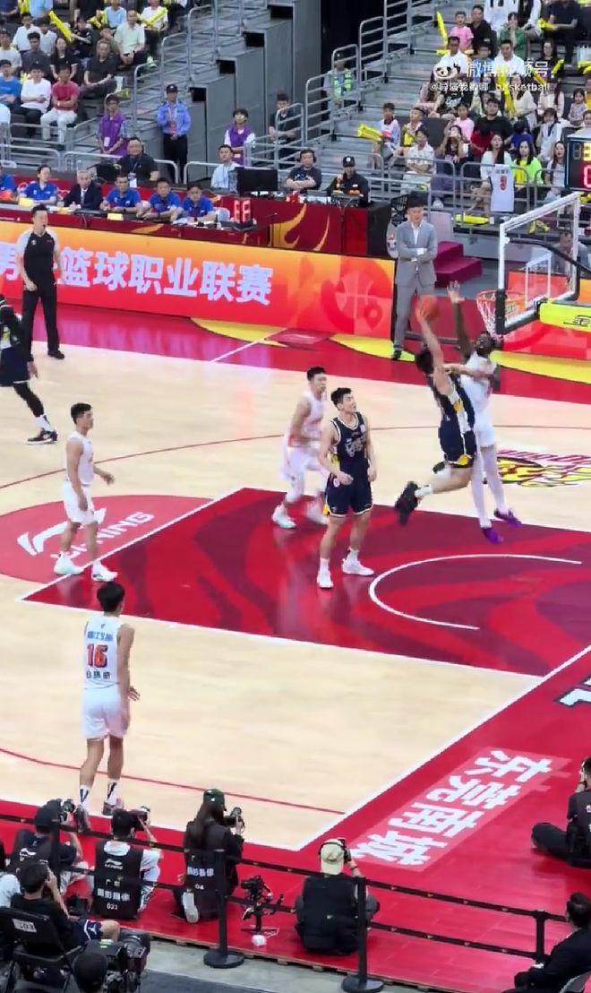 本场比赛的第二节比赛中,广东队以48-29领先19分,崔永熙在无人防守的情况下沿着底线突破,只见他来到了篮下高高跃起准备表演一个暴扣。