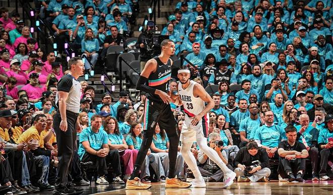 4月20日NBA季后赛迎来焦点对决,常规赛排名西部第二的圣安东尼马刺队,主场迎战附加赛首轮突围的波特兰开拓者队!本赛季常规赛双方3次交手马刺赢得其中2次,球迷方面开拓者这边全员健康,马刺这边麦克劳林、加西亚两名板凳席末端的球员不打,马刺先发(瓦塞尔、尚帕尼、文班亚马、福克斯、卡斯尔),开拓者这边阿夫迪亚、卡马拉、克林根、亨德森、霍勒迪!马刺与开拓者都是年轻球队,球员们年轻有活力且天赋出众,本赛季马刺在文班亚马的带领下打出了争冠球队实力,开拓者的成绩也超过预期。本场比赛文班亚马面对克林根+马威的内线组合能交出何种攻防表现是最大看点,杨瀚森能否获得出场时间也值得期待,来到马刺这边能否限制阿夫迪亚的发挥将直接决定比赛走势,我们都知道锋线尺寸是马刺阵容唯一短板。让我们带着这些看点一起进入比赛!