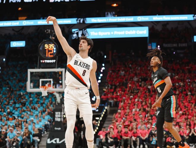 中段阿夫迪亚不讲理单打强攻,配合亨德森的三分球,开拓者一度反超。但文班亚马点名阿夫迪亚+喂饼瓦塞尔轰三分,后半段福克斯和文班亚马下三分雨,文班亚马直接迎射克林根,克林根够不着!节末约翰逊再中压哨三分,第一节马刺30-21领先开拓者。进入第二节,夏普和卡马拉带领开拓者追分,文班亚马霸王劈扣,随后空接继续上分!中段瓦塞尔三分球打停开拓者,危急时刻,又是阿夫迪亚艰难造杀伤,随后顶着科内特强硬对抗上篮打进!科内特和福克斯内外开花,马刺得分很容易,霍勒迪上篮+罗威补扣止血。