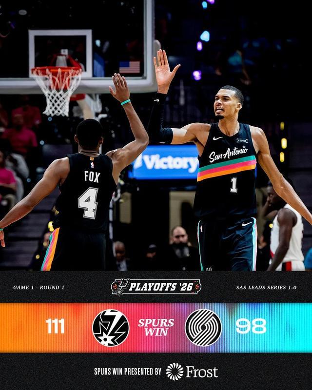 上半场比赛文班就拿到21分,第三节划水(马刺的其他人这一节打得非常好),第四节上来文班单节14分终结比赛悬念。全场35分打破了马刺队史季后赛首秀得分纪录。原先的纪录持有者今天就在看台上坐着呢,邓肯当初第一场季后赛拿下32分10篮板2封盖。