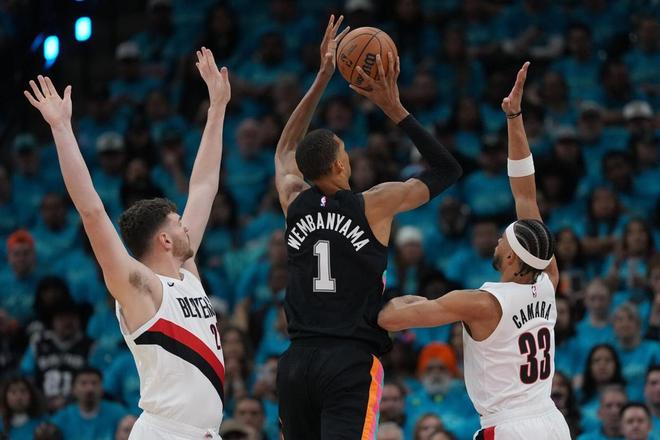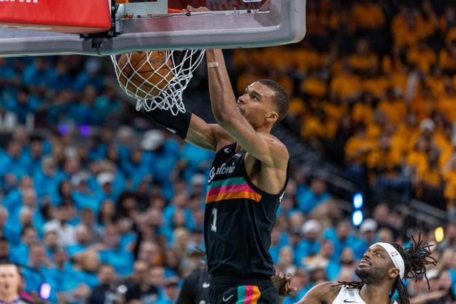 文班亚马首节砍下了12分,上半场就贡献了21分。末节,文班亚马再得14分。文班亚马在第4节还有连得9分的高光表现,并一举带队收下了比赛。作为此战的盖帽王,文班亚马在防守端存在感极强。并且,文班亚马在篮板球保护方面也有着突出的贡献。文班亚马展现了强大的统治力,他不愧为本赛季常规赛MVP和DPOY的热门人选。