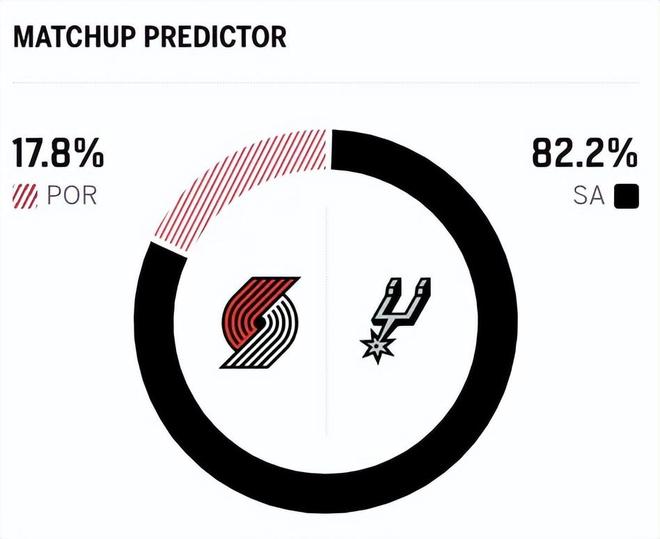 赛前,美媒ESPN对本场比赛进行了胜率预测,马刺队胜率高达82.2% ,开拓者胜率则仅有17.8% ,差距非常明显。