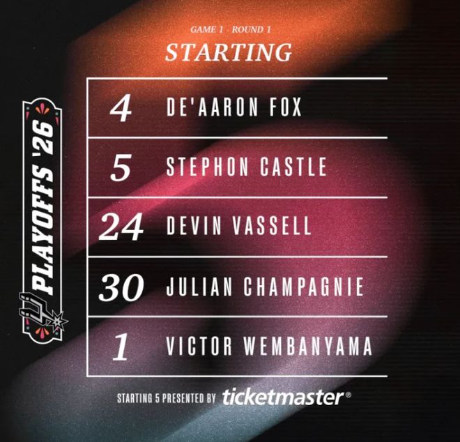 首发阵容方面,开拓者队这边,主帅排出的首发五人组为:阿夫迪亚、亨德森、霍勒迪、卡马拉、克林根;马刺队这边,首发阵容则为:福克斯、卡斯尔、瓦塞尔、尚帕尼、文班亚马。