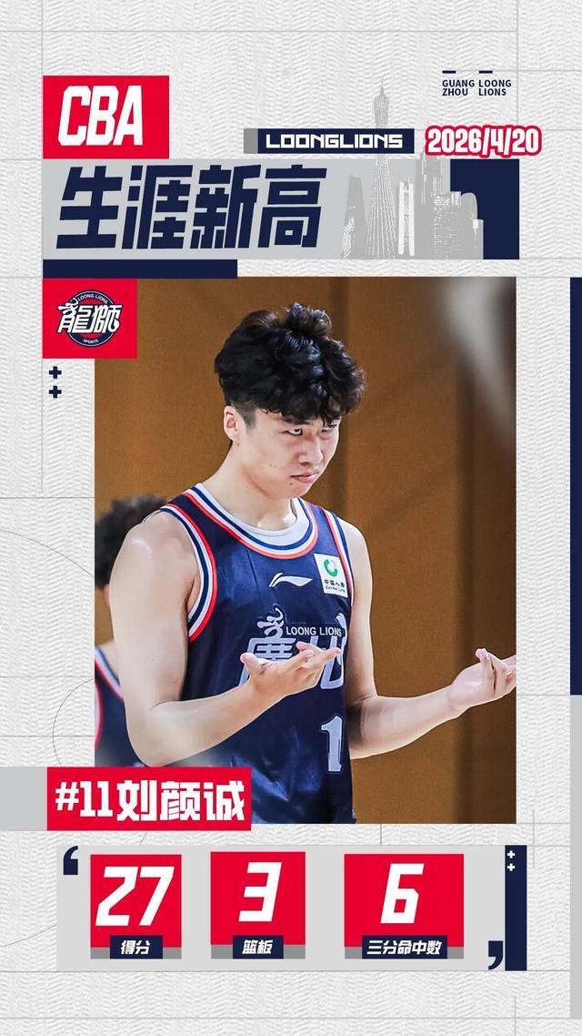 恭喜队长刘颜诚在本场比赛创下生涯新高!砍下27分3篮板,命中6记3分!YC,今晚太C啦!!