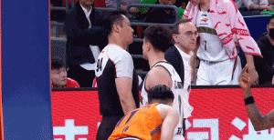 死球后赵继伟对裁判进行了严重抗议,手指裁判情绪有些激动,面对比自己还高半头的裁判进行了面对面的输出,94号裁判在尽量避免飞沫传播的同时也没有对有些上头的赵继伟客气,随后吹罚了赵继伟一次技术犯规。