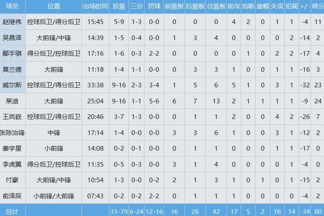 辽宁队数据如下: