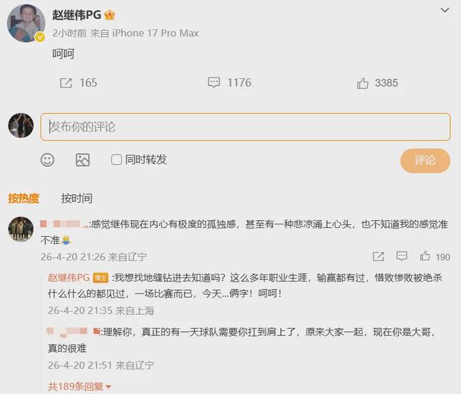 这一场惨败,让辽宁队当家球星赵继伟雷霆大怒,赛后发博怒喷球队,如下: