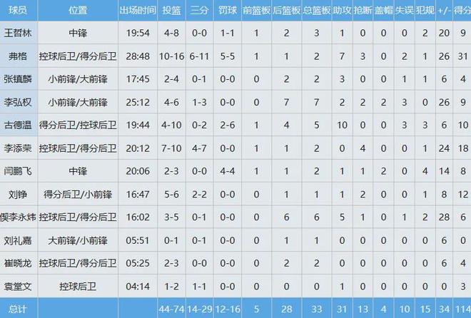 张镇麟面对老东家进攻欲望不强,出手4次中2球得到4分2板3助;曾为辽宁队夺得三冠且是24年FMVP的弗格则是丝毫不留情面,投篮16中10狂轰31分外加7助3断,正负值+26。