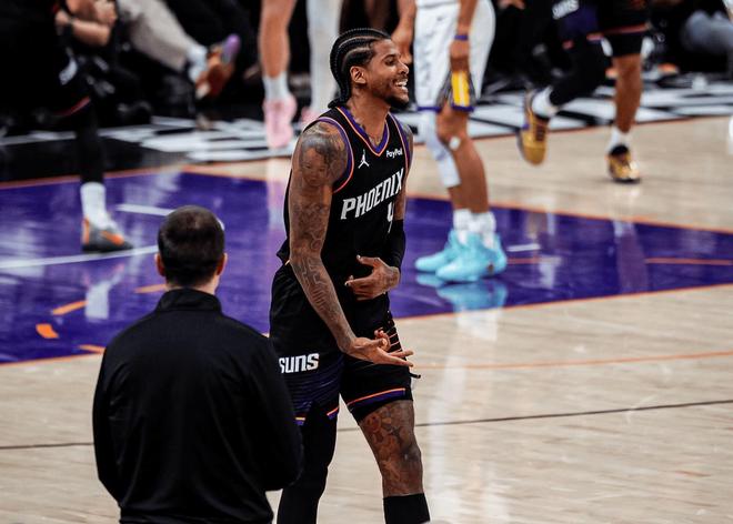 于是到去年夏天,他们不得不做出重建的决定,送走了比尔和杜兰特,只留下布克一个全明星,关键是太阳并没有从杜兰特的交易中,得到过多的回报,他们送走KD的同时,只得到了杰伦格林,狄龙布鲁克斯,一个首轮签以及5个次轮签。说句不好听的,一个首轮就把超级巨星杜兰特给打发走了,太阳也不知道图啥,可能破罐子破摔,重建心切。交易达成过后,太阳在赛季初ESPN给出的战力排行榜中,仅仅排在第25位,没几个人相信他们可以闯进季后赛。而万万没想到的是,本赛季太阳却稳扎稳打,一直能保持50%以上的胜率,最终常规赛排名西部第7,附加赛鏖战两场,压哨打进了季后赛。
