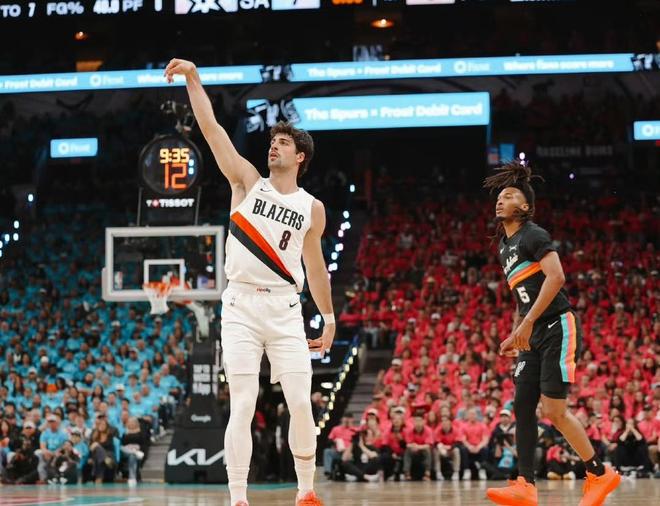 而马刺不仅有文班,外线核心福克斯也是全明星水平的球员,在国王队当过这么多年老大,带队经验丰富。并且,福克斯一直以来还具备大心脏属性,擅长打关键球,季后赛这种强硬对局也能有所发挥,这么来看今年马刺争冠真的很有戏。另一边的开拓者,可能是今年季后赛球队当中,最冷门的一支,他们没几个明星球员,账面实力看起来差了许多,却硬生生打进季后赛,主要原因在于阿夫迪亚进步太快了,这名锋线冲击力十足,不惧对抗,此前的附加赛中,阿夫迪亚就轰出了41分12助攻的大号两双数据。