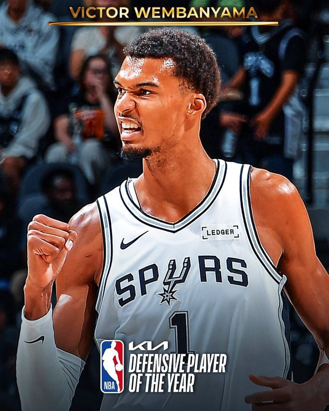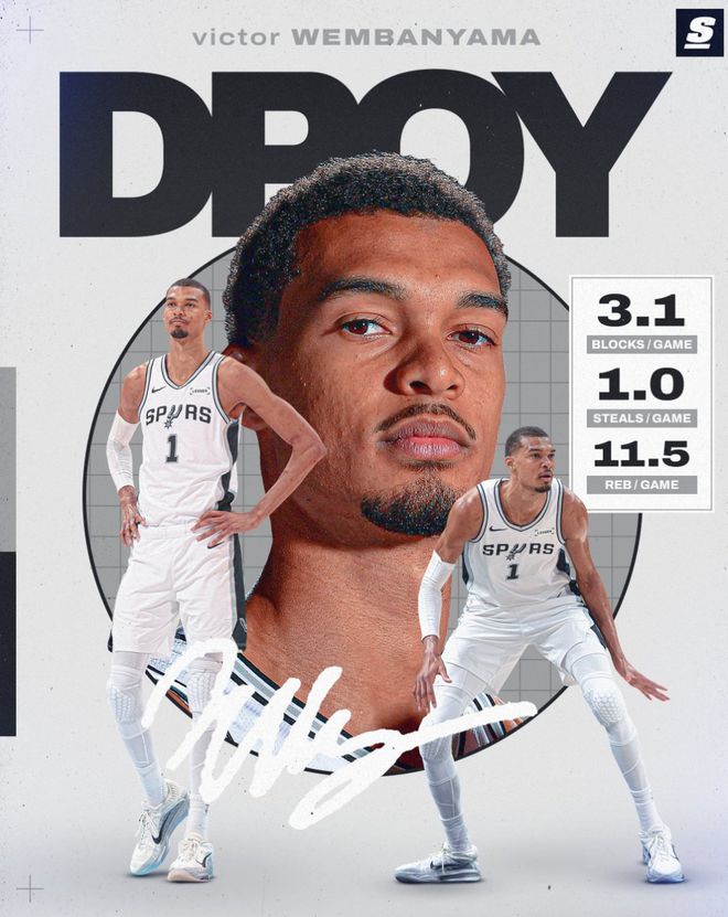 12.文班亚马连续三个赛季是联盟的盖帽王,第三赛季拿DPOY马刺队史首人;