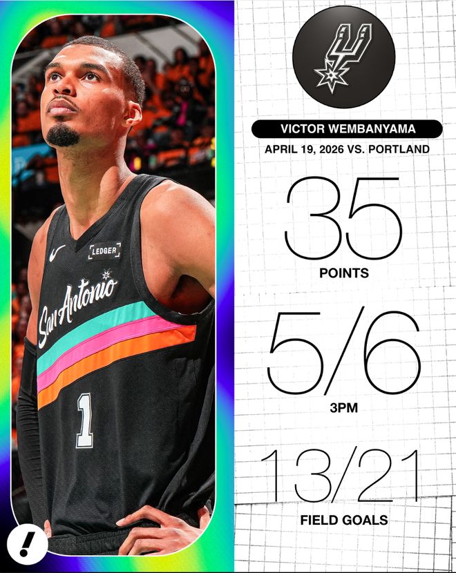 西部第二的马刺没有让以下克上发生,最终他们还是大胜开拓者,大比分1-0领先。此役外星人维克托-文班亚马再度展现了他那无与伦比的天赋,不管是打卡马拉、阿夫迪亚、克林根、罗威他都得心应手。