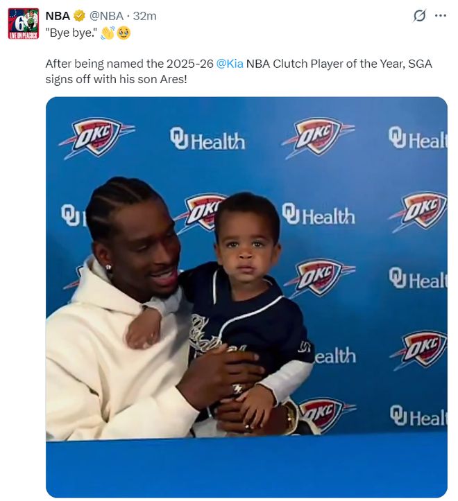 采访的现场SGA的儿子阿瑞斯实际上也在,亚历山大与直播员们希望阿瑞斯能为爸爸营业一下,但SGA一抱着阿瑞斯他就胆怯的想离开,最终阿瑞斯只说了一句:Bye Bye结束了采访。