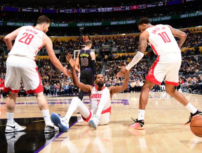 这一场比赛,火箭队肯定是倾其所有了,他们在首战无悬念惨败给湖人队,所有人都觉得是杜兰特伤停导致火箭队的体系崩塌,无法跟湖人队抗衡。因此,杜兰特今天选择了带伤复出,坚持打比赛,希望能够扳回一局。