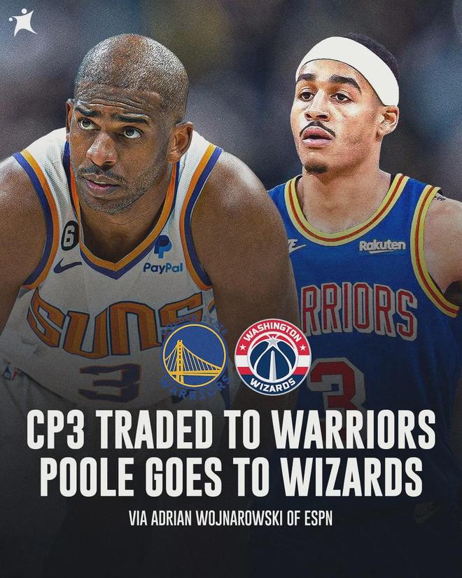 来看看邓利维这三年的操作,2023年休赛期,勇士用乔丹-普尔、小帕特里克-鲍德温、罗林斯、2027年次轮签和2030年首轮签(前20顺位保护),5换1得到克里斯-保罗。勇士只得到保罗一年使用权,2024年夏天他离队加盟马刺。