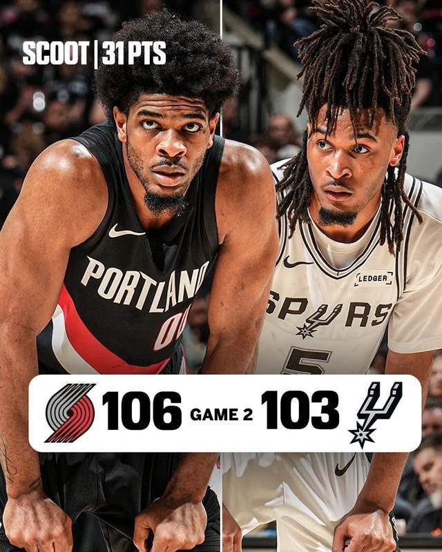 今日季后赛,西部首轮G2,马刺主场103-106输给开拓者,系列赛大比分被追成1-1。