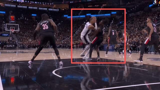 本场比赛第二节9分钟时,文班亚马外线持球,面对霍勒迪防守,一个简单的错位大打小;熟悉的再熟悉不过的动作,结果瞬间意外就发生了。