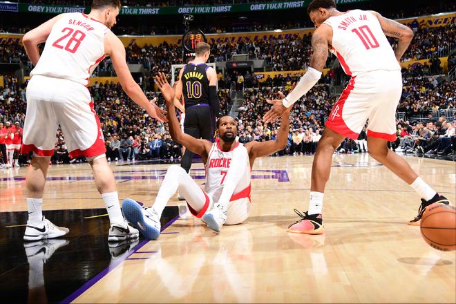 当然今天湖人大部分时间没能拉开分差,还是因为自己的进攻也一般,次节和第三节疯狂失误。所以对于火箭来说,这本应该是一个扳平系列赛比分的好机会,但他们没有把握住。湖人失误的时候,火箭队也失误。末节湖人攻防两端开始上压力的时候,火箭队还在失误。失误也就算了,外线投射频繁打铁,追分机会转瞬即逝。杜兰特下半场的表现,和上半场判若两人,下半场只得到了3分。乌度卡的临场和战术安排,再次被雷迪克爆掉了。从G2来看,杜兰特复出的唯一作用,就是球队多了一位能拿20+的球员,仅此而已,乌度卡没有将杜兰特的威胁最大化。