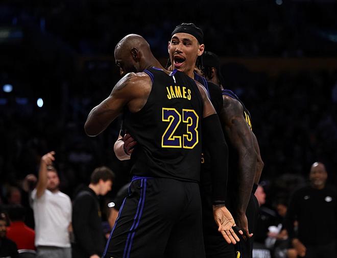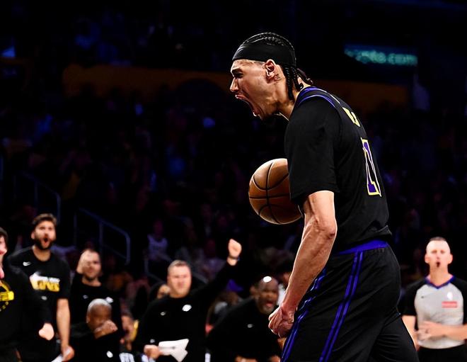 本场比赛中,湖人的替补中锋贾克森-海斯(Jaxson Hayes)的表现还是相当不错的。海斯全场出场21分24秒,投篮2中1,三分线外1中0,罚球5中4,得到了6分4篮板1助攻1抢断2盖帽的数据,还有2次犯规,正负值则是达到了全场最高的+12。海斯在进攻端的表现非常强硬,他也是展现出了很强的内线强攻能力并且对手内线制造了一定的威胁,得到了一些分数。最关键的是,海斯在本场比赛中在防守端的表现也是有了显著的提升,他也是展现出了自己在防守端的价值,镇守住了球队的内线。海斯在本场比赛中算是打出了攻守兼备的表现,起到了不小的作用,+12的正负值也能够充分说明他在场上时对于球队的积极影响有多大。