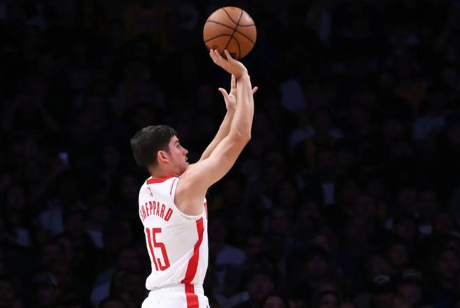 本场比赛中,火箭的替补后场新星里德-谢泼德(Reed Sheppard)的表现实在是太糟糕了,完全没有展现出自己的价值。谢泼德全场出场10分33秒,投篮4中0,三分线外3中0,全场1分未得,仅贡献3助攻1抢断的数据,正负值为+1。谢泼德在进攻端毫无手感,得分能力和投射能力都完全没有发挥出来,在进攻端都没有办法为球队提供基本的支持。不仅在进攻端表现不佳,谢泼德在防守端的表现更是一塌糊涂的水平。不夸张地说,谢泼德在防守端简直是任人宰割,被对手各种利用。攻也攻不进去,守也守不住,场上效果实在是惨不忍睹,谢泼德在这种情况下无法得到更多的出场时间和表现机会,也是合情合理的事情。