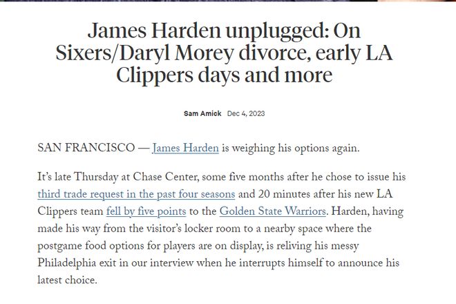 时间回到2023年12月,哈登谈到休赛期与火箭队会面的话题,他与斯通、乌度卡、经纪人一同参与了跟火箭队的会面,会议一直讨论我的打法问题,他们希望我重返得分王的模式,但过去几个赛季我都是以串联球队为主。(最终哈登没有回到火箭,乌度卡被曝出拒绝执教哈登,他认为哈登会破坏火箭体系)